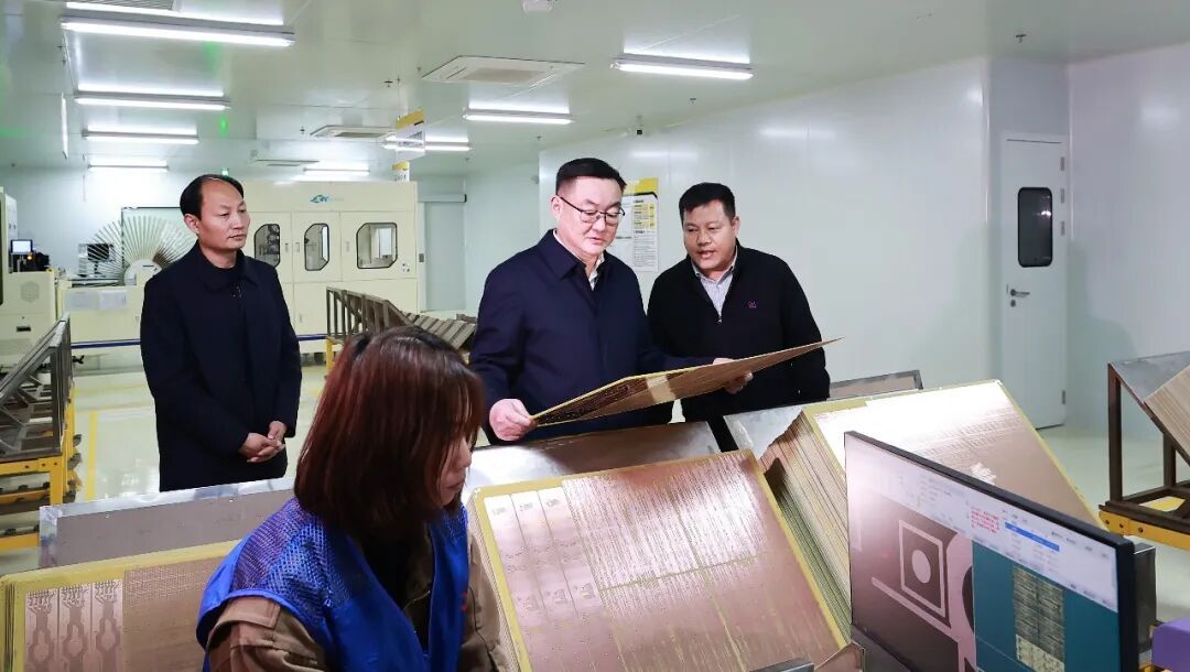 江西祺利电子有限公司年产200万平方米HDI项目产品广泛应用于通讯设备、医疗仪器、汽车电子等领域。罗文江深入生产一线,实地了解企业生产运营情况,勉励企业负责人集中精力抓主业、稳生产,积极融入吉安电子信息产业链,加强科技创新,加快产品迭代,不断提高市场竞争力。