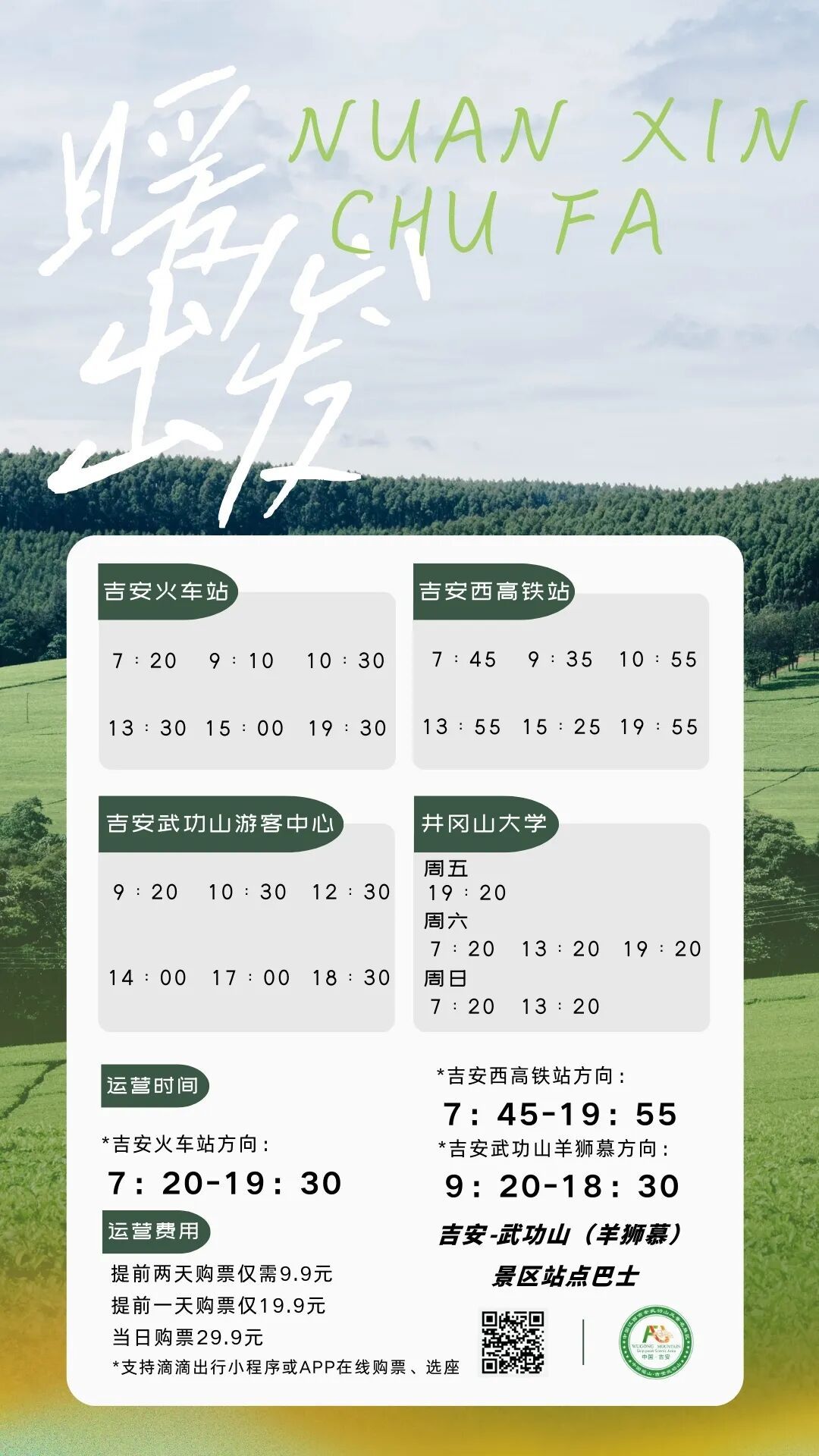 为便利井冈山大学师生周末前往吉安武功山景区开展休闲、研学活动,经协调对接,现正式开通 “井冈山大学 — 吉安武功山” 周末客运专线,具体运营事项通知如下: